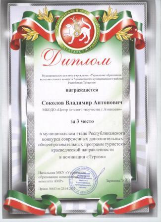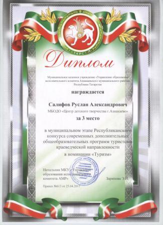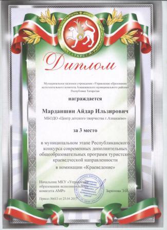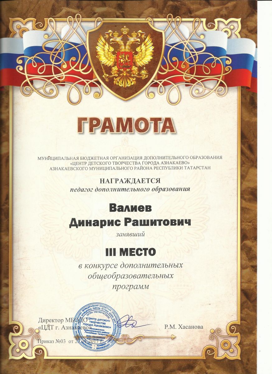 3 место в муниципальном конкурсе дополнительных общеобразовательных программ (Валиев Д.)