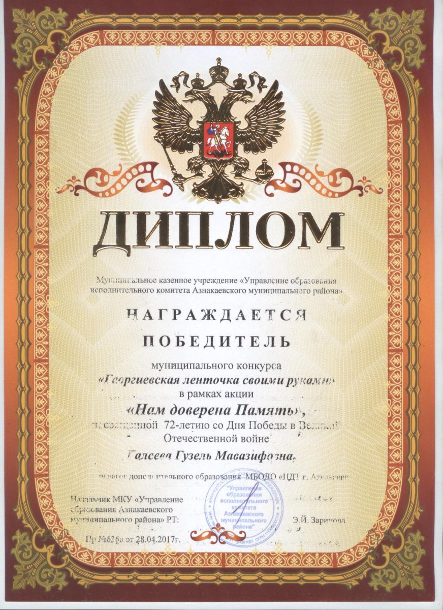 Победитель муниципального конкурса "Георгиевская ленточка своими руками" (Галиева Г.М.)