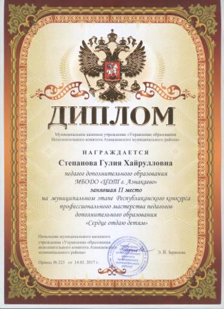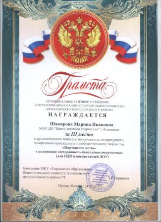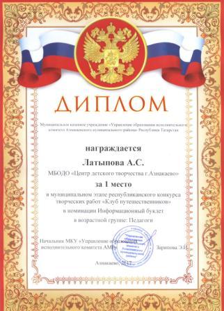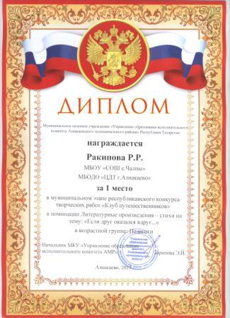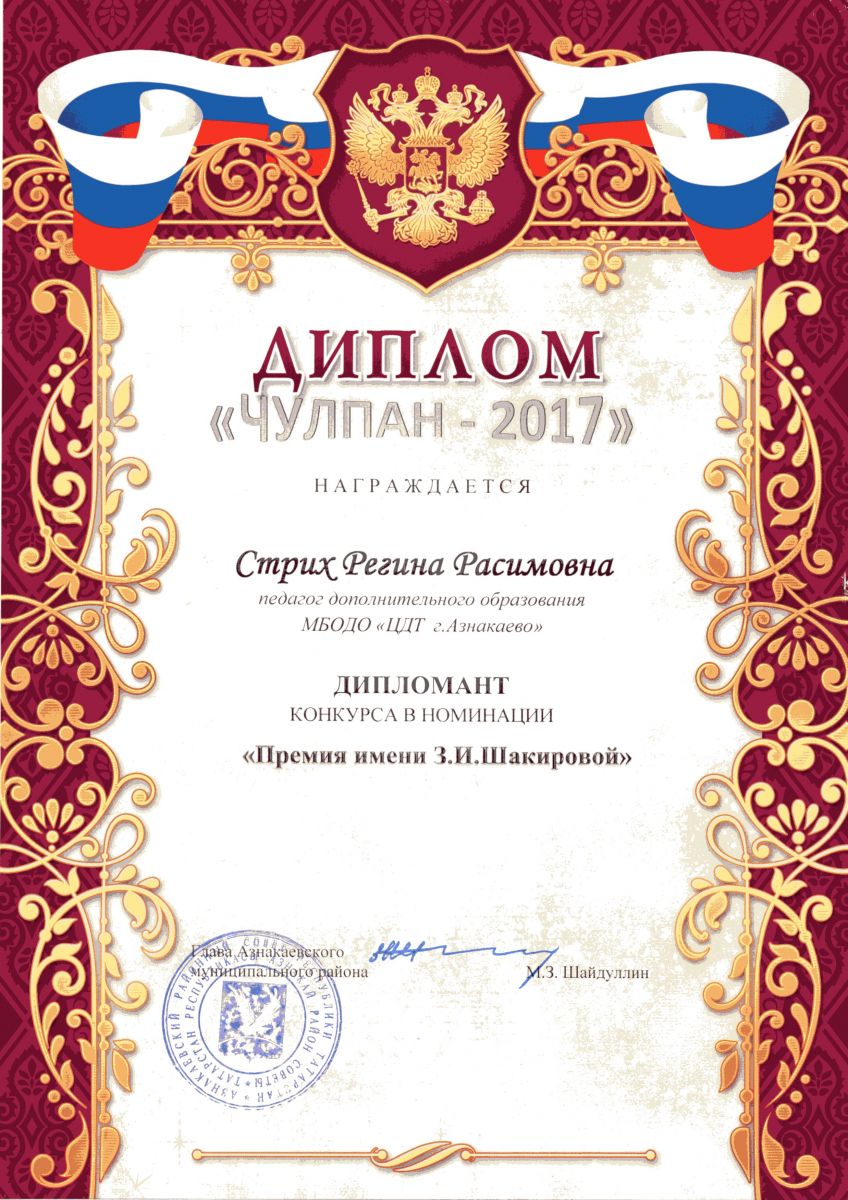 Дипломант муниципального конкурса в номинации "Праемии имени З.И. Шакировой" (Стрих Р.Р.)