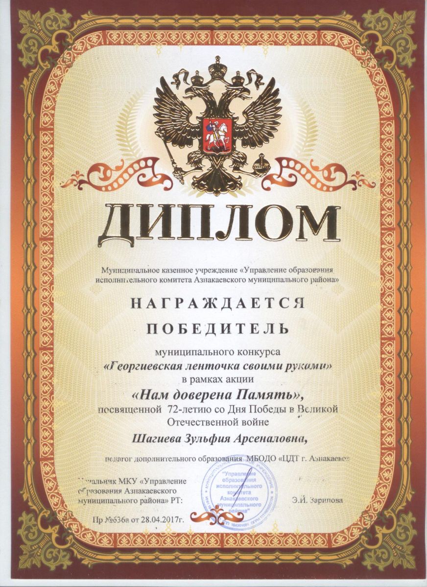 Победитель муниципального конкурса "Георгиевская ленточка своими руками" (Шагиева З.А.)