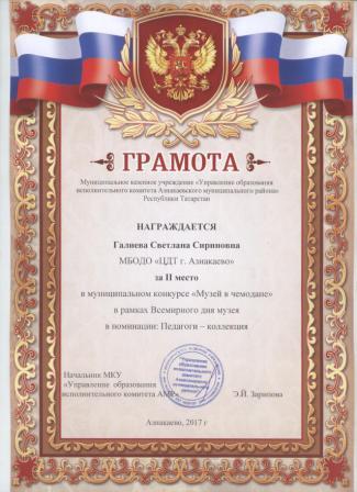 2 место в муниципальном конкурсе «Музей в чемодане» (Галиева С.С.)