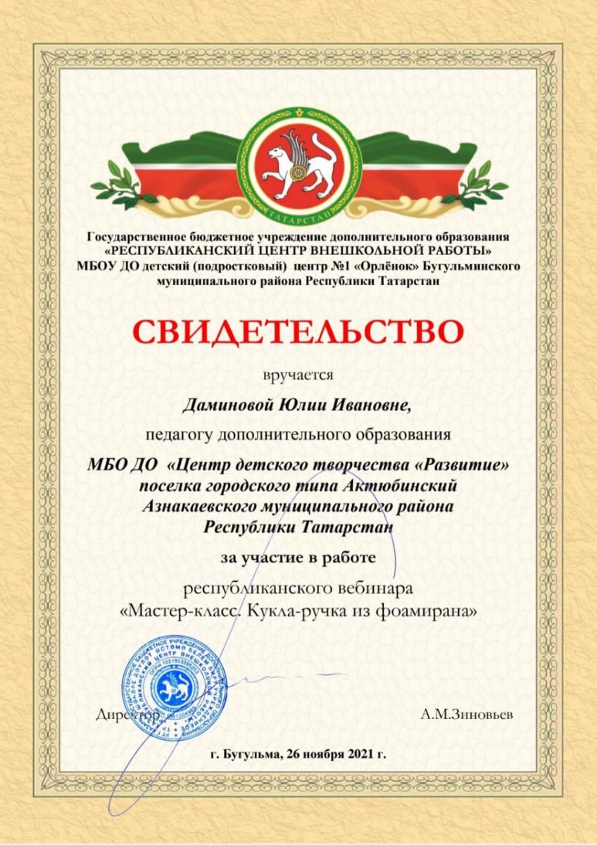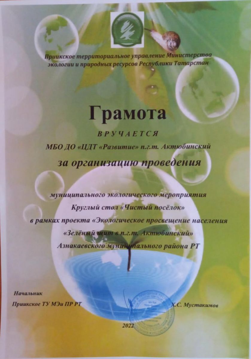 Муниципальная бюджетная организация дополнительного образования «Центр детского творчества «Развитие» п.г.т. Актюбинский Азнакаевского муниципального района Республики Татарстан
