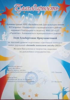 /Благодарность за участие в фестивале-конкурсе Ярмухаметовой Э.А..jpeg