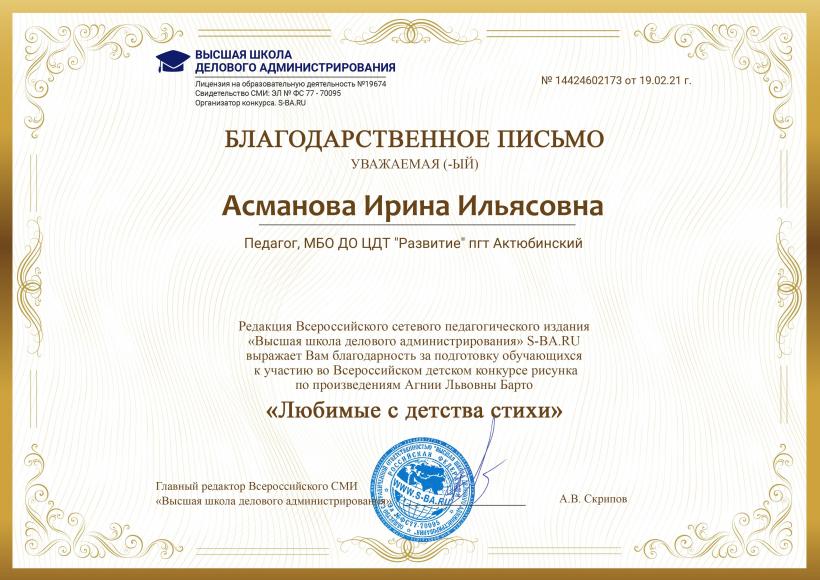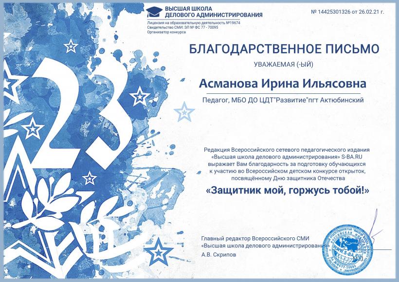 /Благодарственное письмо за подготовку участника рук. Асманова И.И..jpg