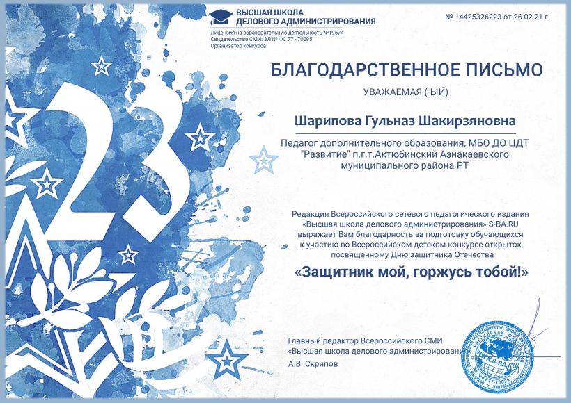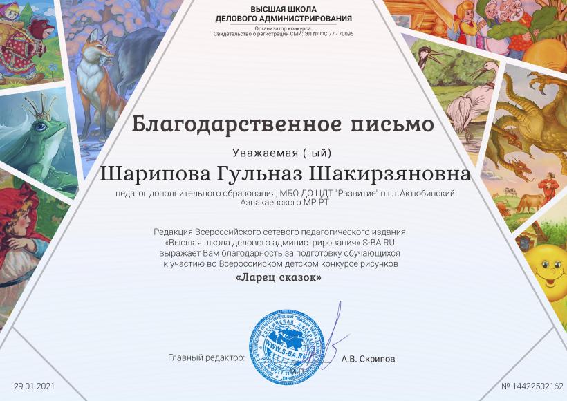 /Благодарственное письмо за подготовку участника рук.Шарипова Г.Ш..jpg