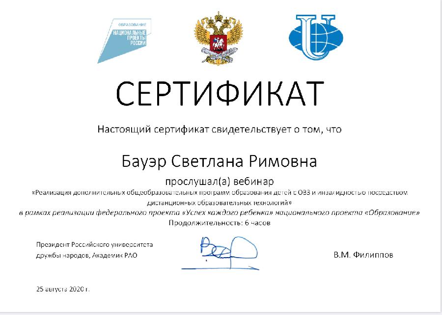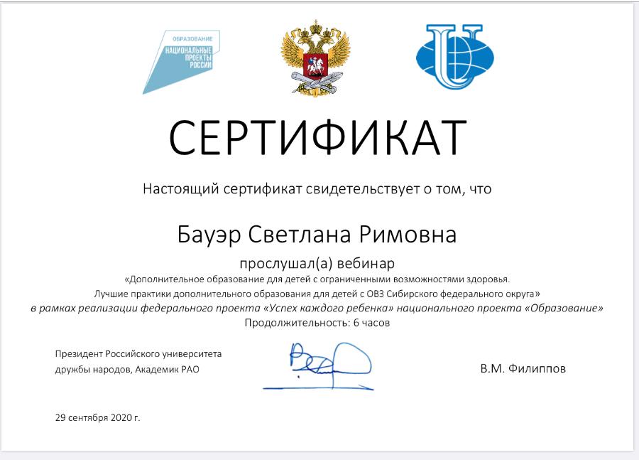 /Сертификат Бауэр С.Р. "Дополнительное образование для детей с ограниченными возможностями здоровья". .jpg