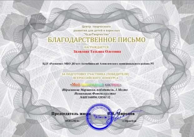 /Благодарственное письмо за подготовку участника "Мой новогодний костюм" рук Залялова Т.О..jpg