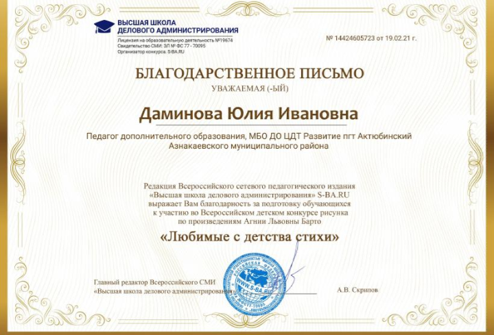 /Благодарственное письмо за подготовку участника рук Даминова Ю.И..png