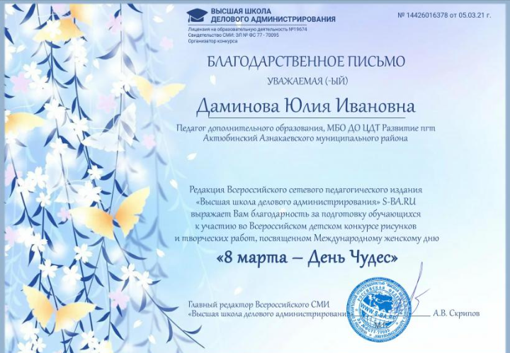 /Благодарственное письмо за подготовку участника рук.Даминова Ю.И..png