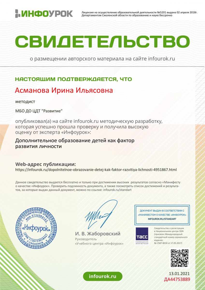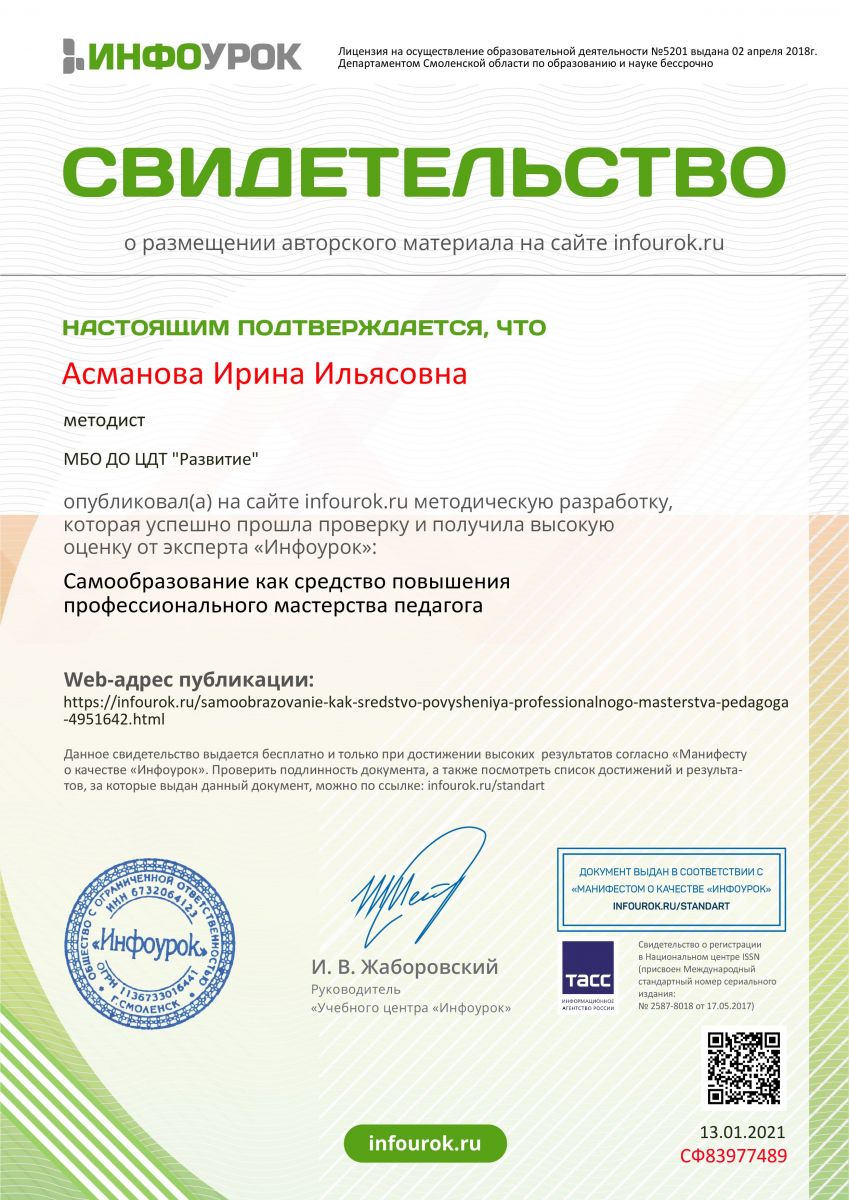 /Свидетельство о публикации педагог Асманова И.И..jpg