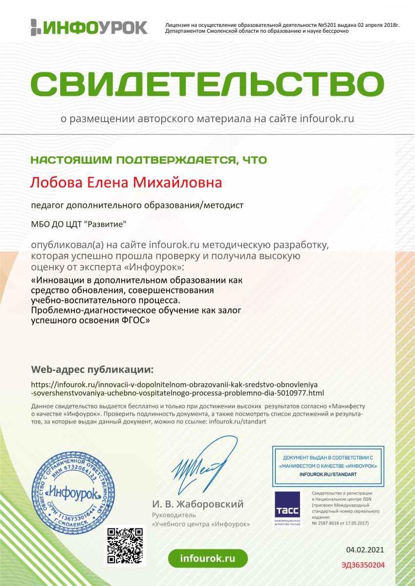 /Свидетельство о публикации педагог Лобова Е.М..jpg