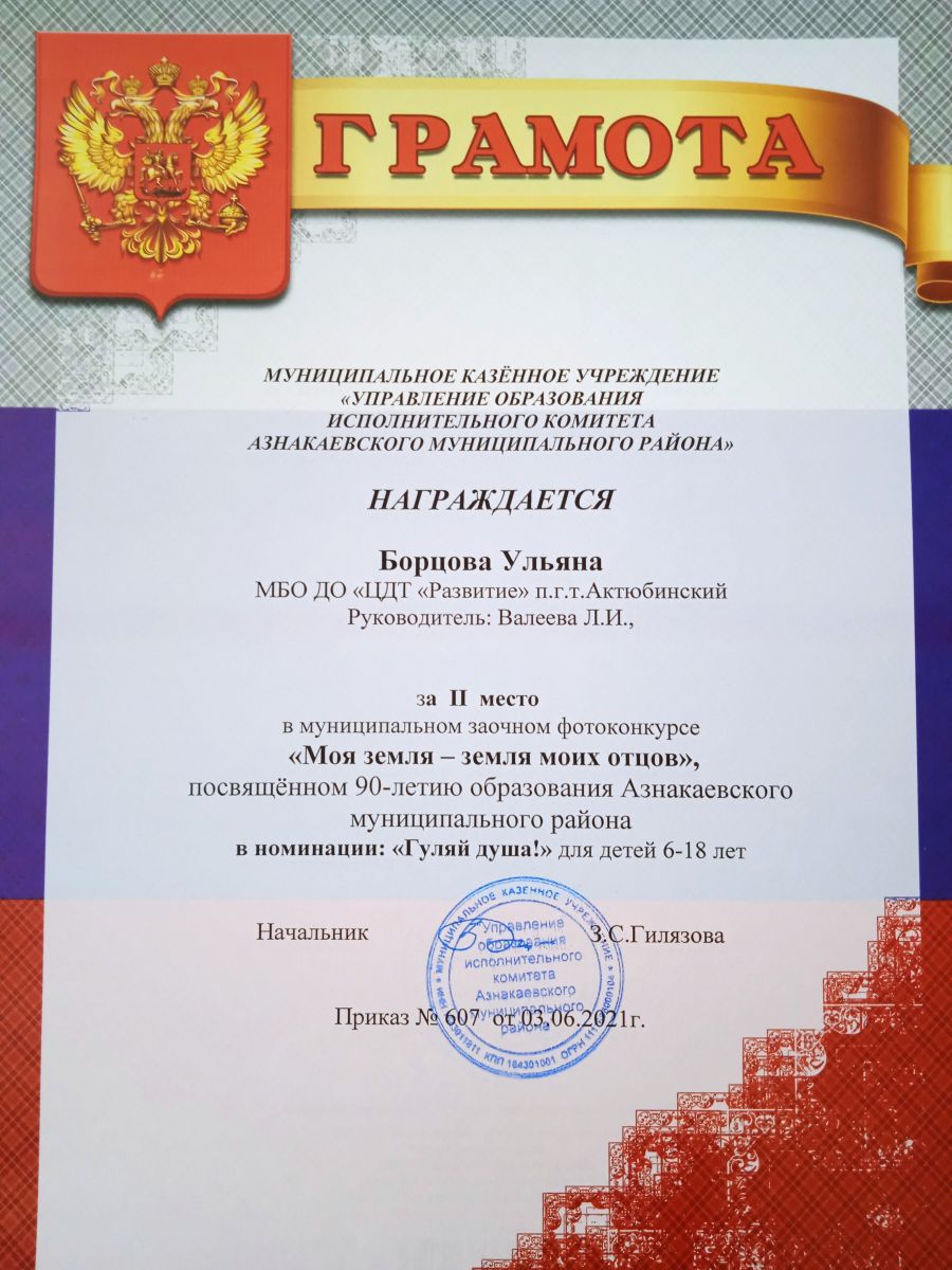 /Грамота за 2 место Борцова Ульяна в конкурсе "Моя земля-земля моих отцов" педагог Валеева Л.И.jpg
