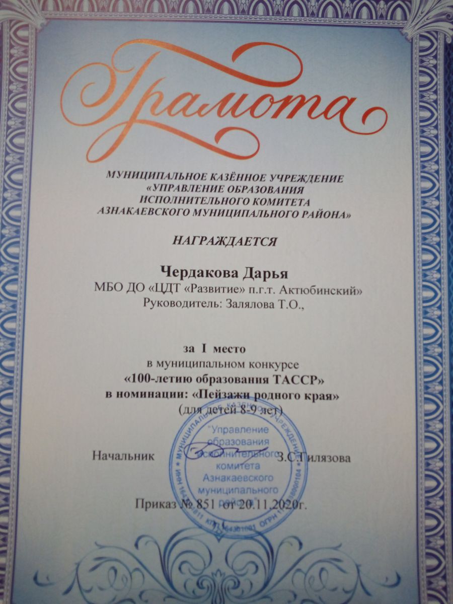 /Грамота за1 место в номинации:"Пейзаж родного края" участник Чердакова Дарья рук. Залялова Т.О..jpg