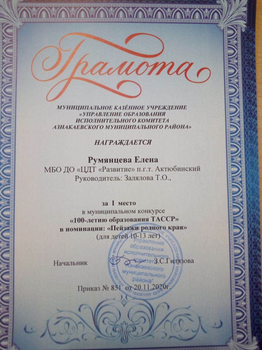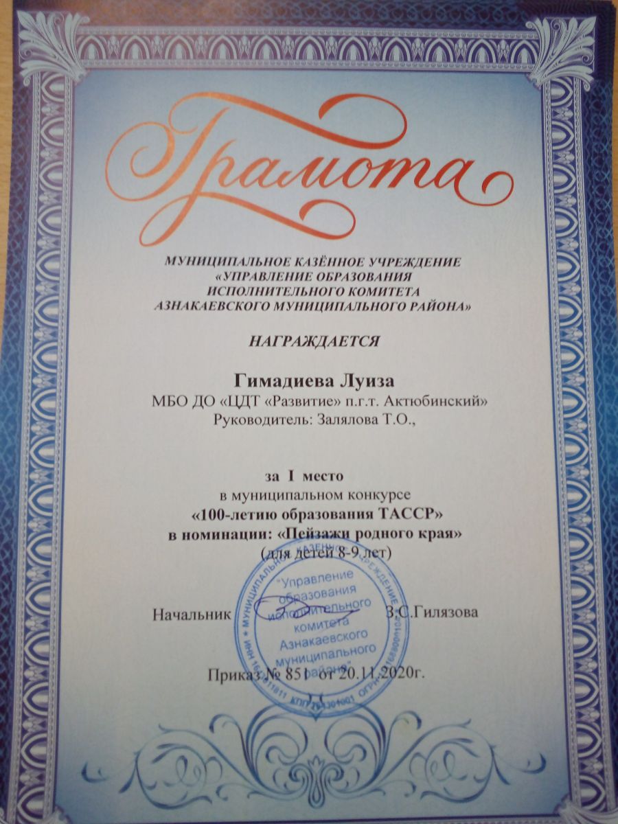 /Грамота за 1 место в номинации: "Пейзаж родногокрая" участник Гимадиева Луиза рук. Залялова Т.О.jpg