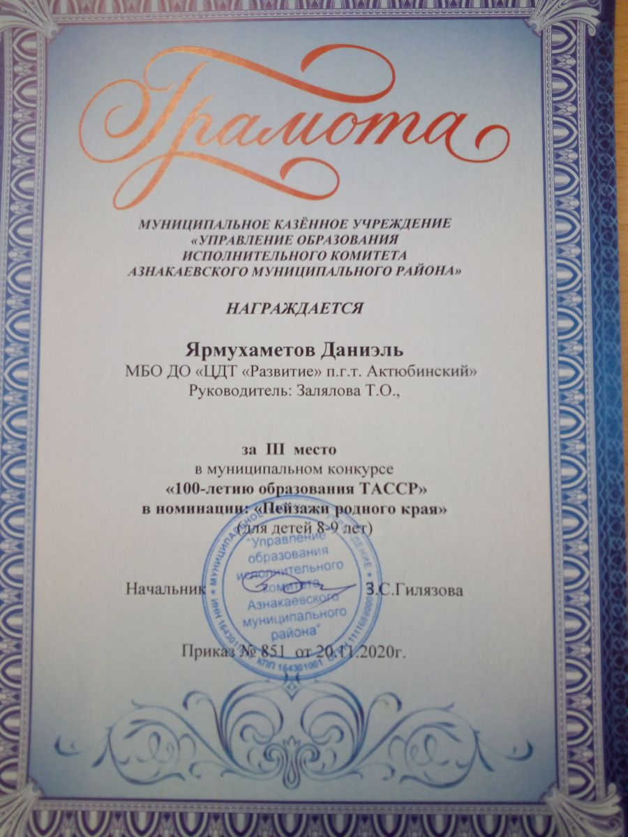 /Грамота за 1 место в конкурсе "100-летию ТАССР" участник Даминов Ростислав рук. Даминова Ю.И..jpg