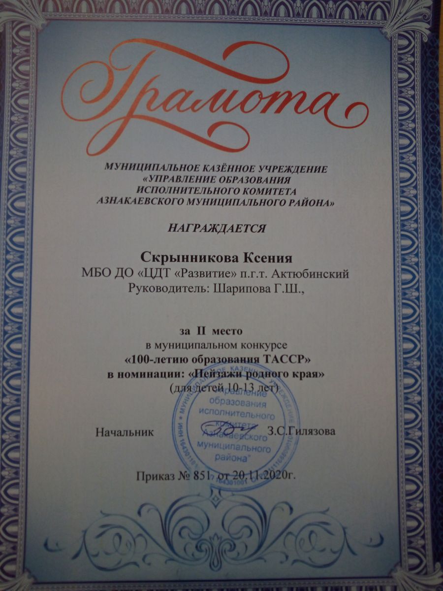 /Грамота за 2 место в конкурсе "100-летию ТАССР" участник Скрынникова Ксения рук.Шарипова Г.Ш..jpg