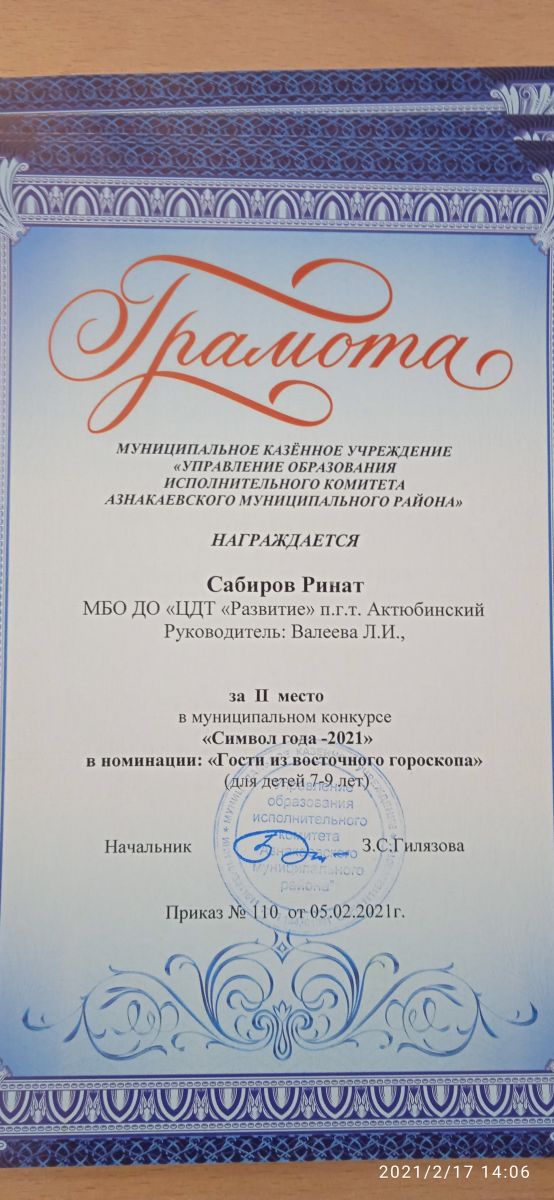 /Грамота 2 место в конкурсе "Символ года-2021" участник Хазиев Ильназ рук.Залялова Т.О..jpg