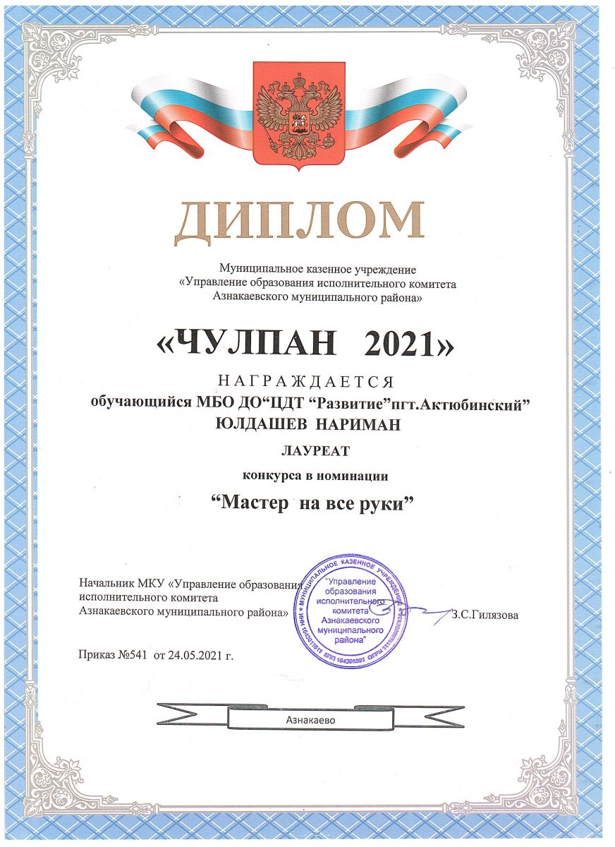 /Диплом лауреат в конкурсе "Чулпан 2021" Юлдашев Нариман рук.Шарипова Г.Ш..jpeg