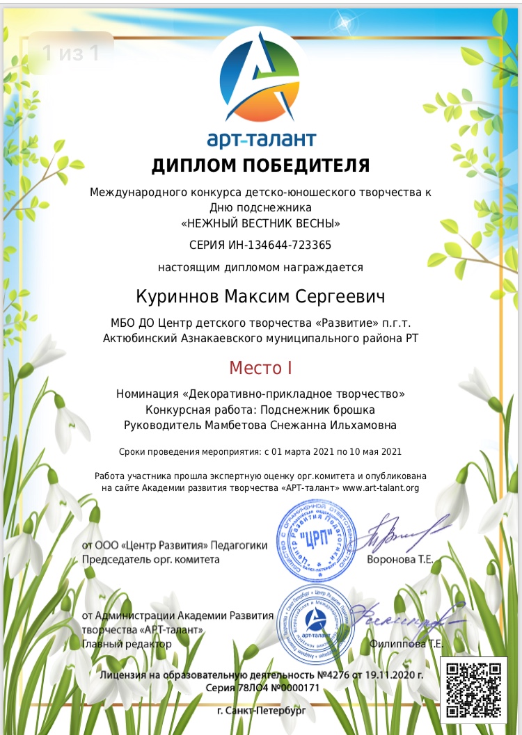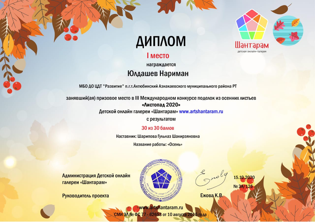 /Диплом за 1 место международного конкурса "Листопад2020" Юлдашев Н. руководитель Шарипова Г.Ш..jpg