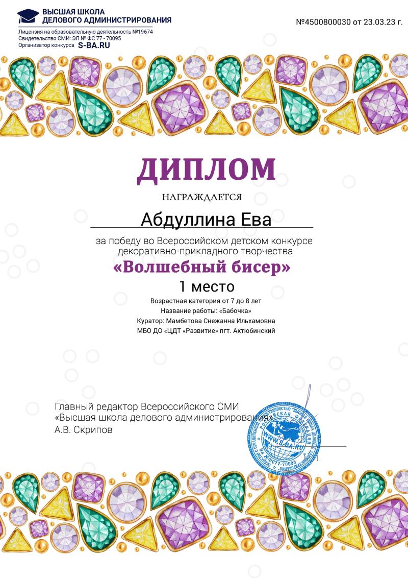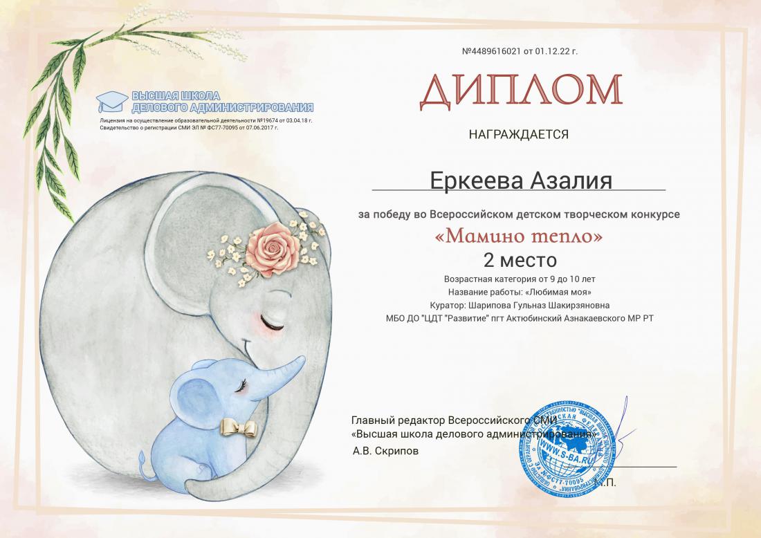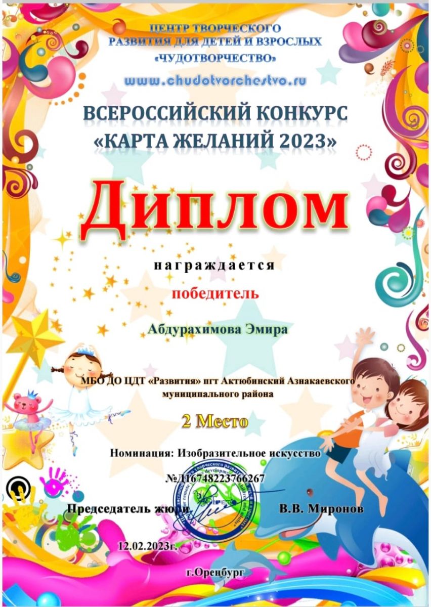 Диплом за 2 место в конкурсе "Карта желаний 2023", участница Абдурахимова Э., педагог Валеева Л.И.