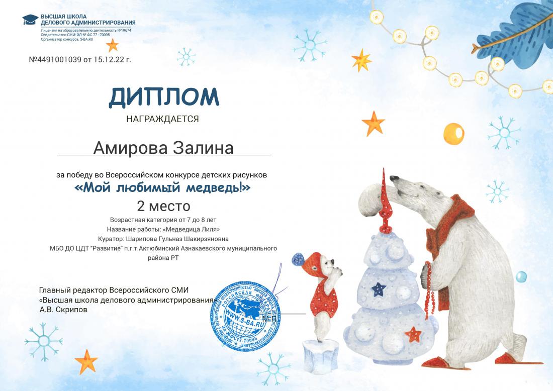 Диплом за 2 место в конкурсе "Кто впадает в спячку", участник Ибатуллин С., педагог Мамбетова С.И.