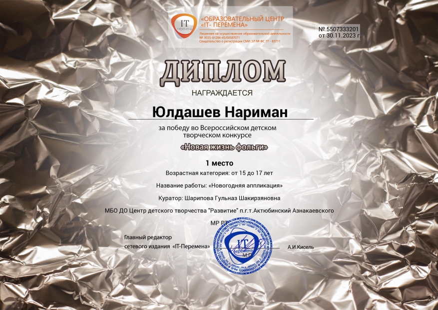 Муниципальная бюджетная организация дополнительного образования «Центр детского творчества «Развитие» п.г.т. Актюбинский Азнакаевского муниципального района Республики Татарстан