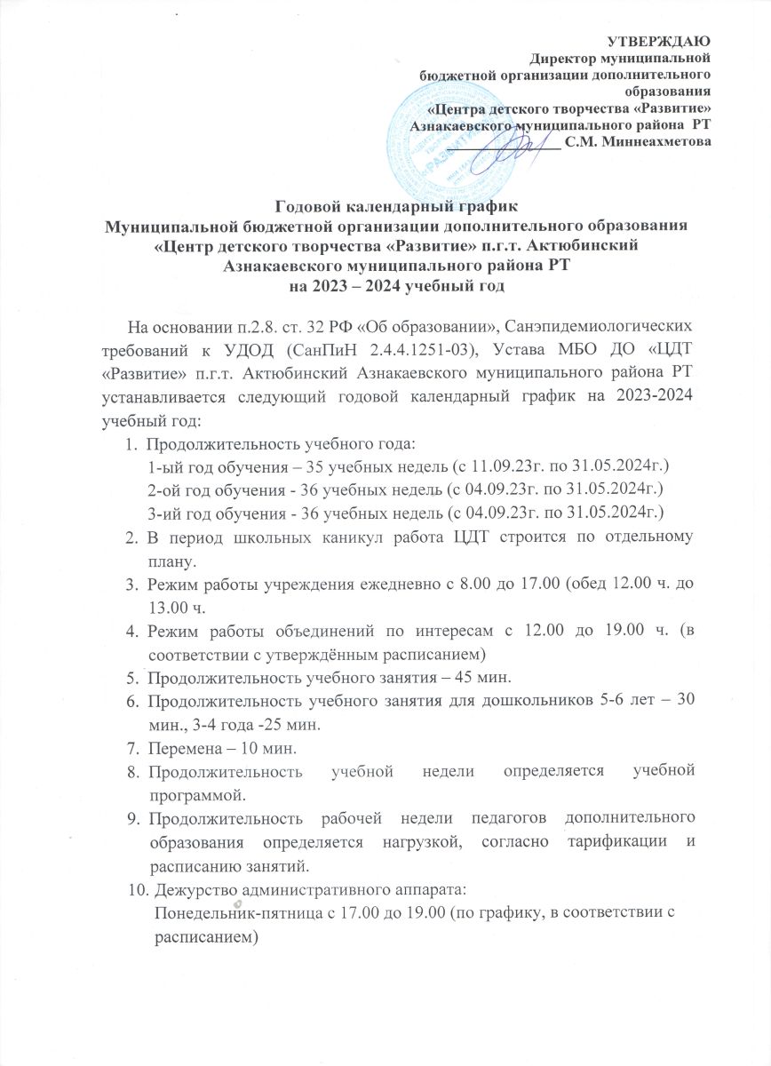 Муниципальная бюджетная организация дополнительного образования «Центр детского творчества «Развитие» п.г.т. Актюбинский Азнакаевского муниципального района Республики Татарстан