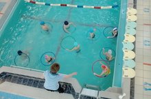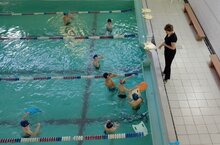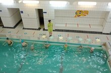 Занятие прошло в малой чаше. Провела занятие ПДО Гусева А.М. Тема занятия:"Согласование движений руками с поворотом головы для вдоха при плавании кролем на груди".
