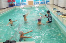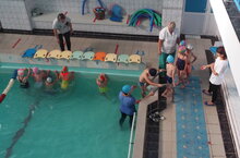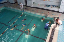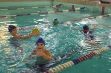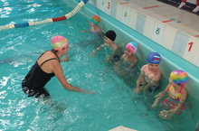 Провела занятие ПДО Гусева А.М. Ребята обучались правильно спускаться в воду, свободному передвижению по акватории бассейна.