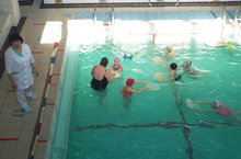 Занятия по плаванию с воспитанниками детских садов продолжаются. Сегодня ПДО Муртазина М.М. провела занятие с воспитанниками д/с №1. И как всегда разминка на суше перед заходом в воду.