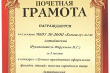 ДООЦ "Комеш су" в конкурсе "Лучшее праздничное оформление фасадов зданий" п.г.т.Актюбинский занял 1 место!