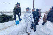 Сотрудники ДООЦ принимают участие в строительстве снежного городка.