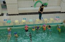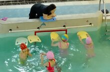 Занятие с воспитанниками д/с №3 по программе "Здоровячок" 1-го года обучения провела ПДО Гусева А.М. Ребята учились погружать лицо под воду на задержке дыхыния.