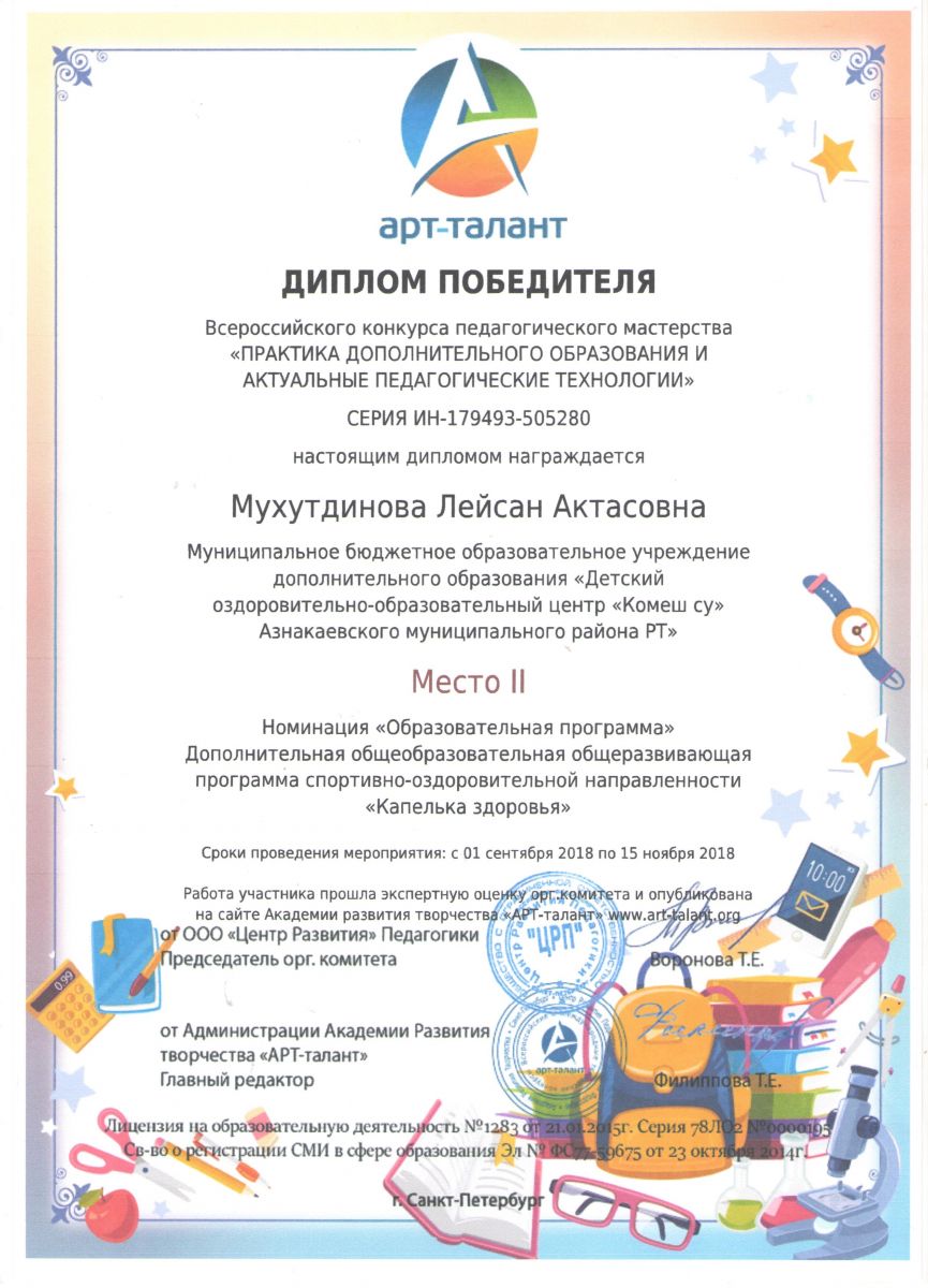 Муниципальное бюджетное образовательное учреждение дополнительного образования «Детский оздоровительно-образовательный центр «Комеш су» п.г.т.Актюбинский Азнакаевского муниципального района РТ»