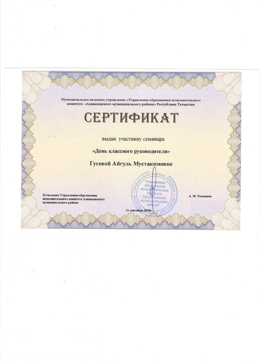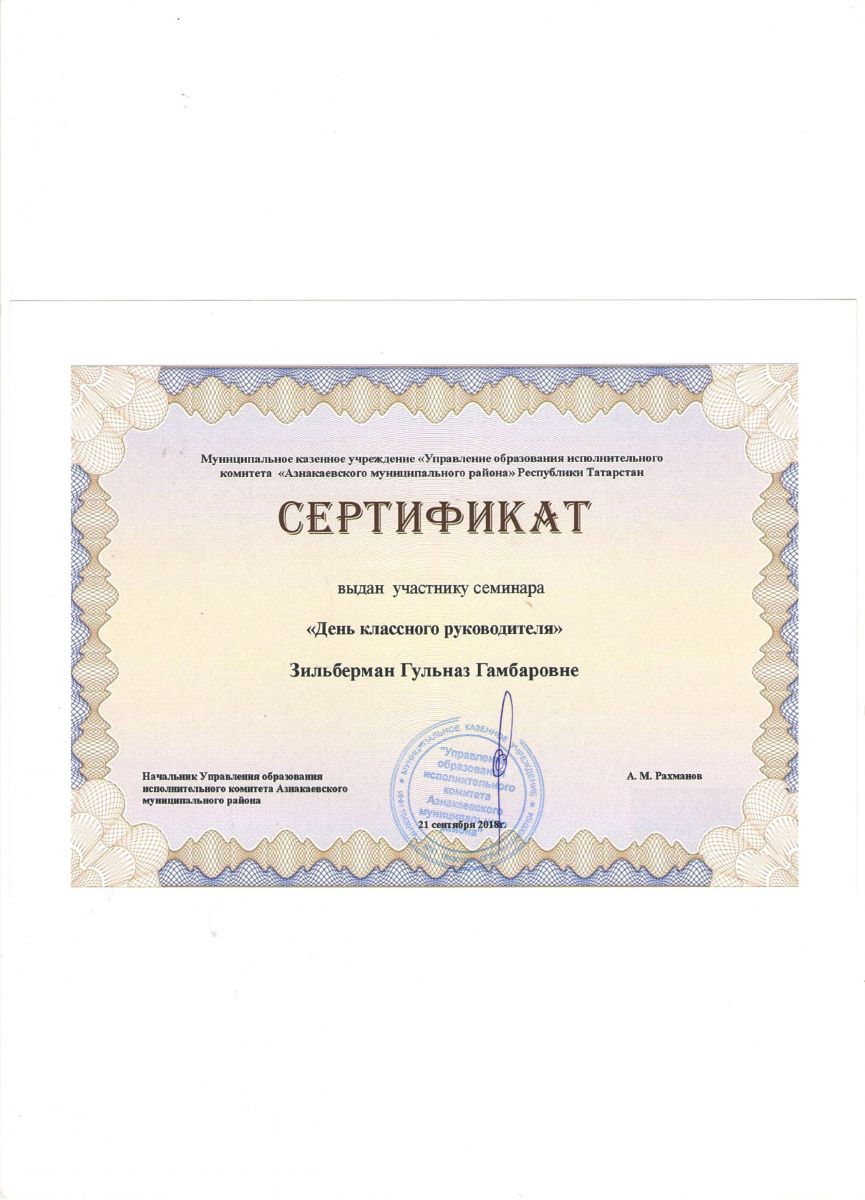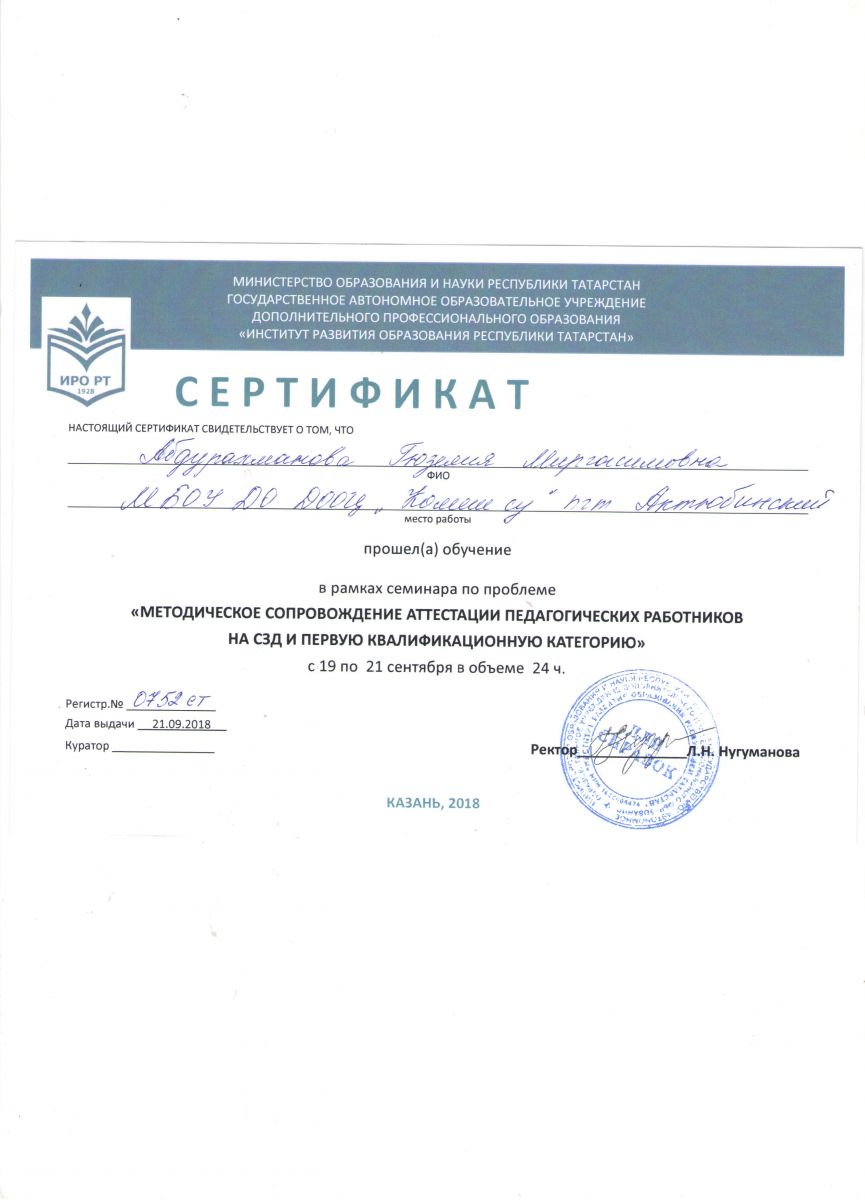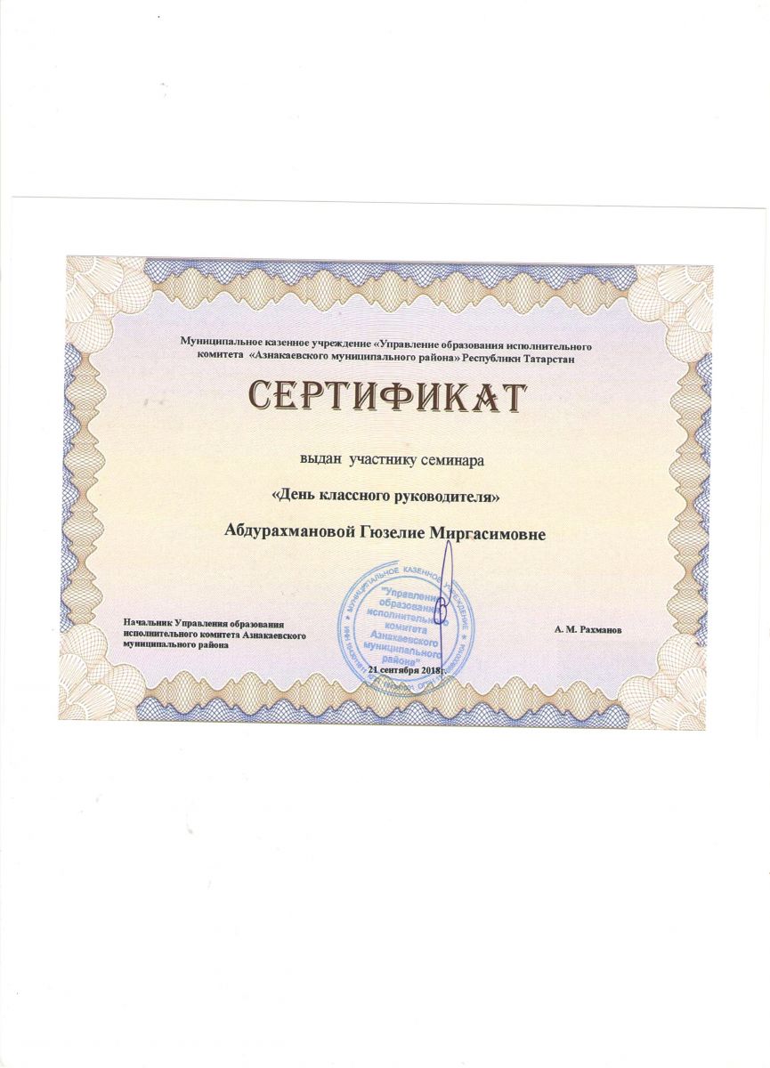Сертификат на обучение в рамках семинара, 21.09.2018г., Абдурахманова Г.М.