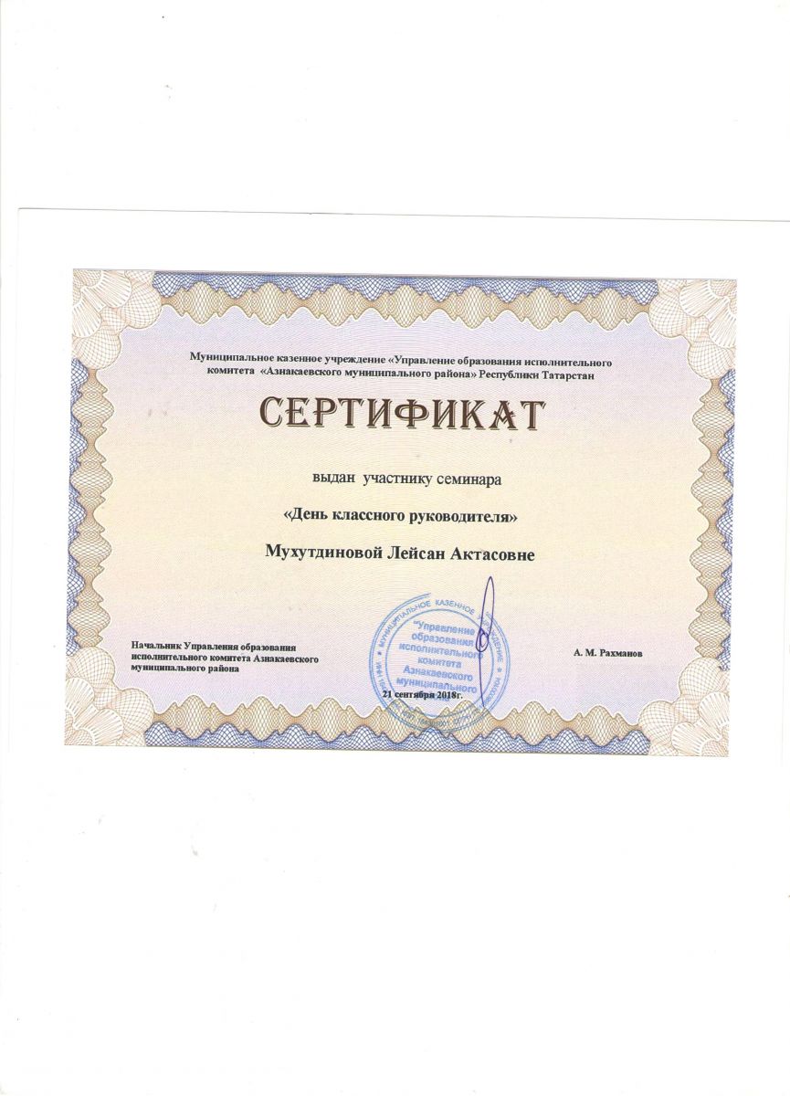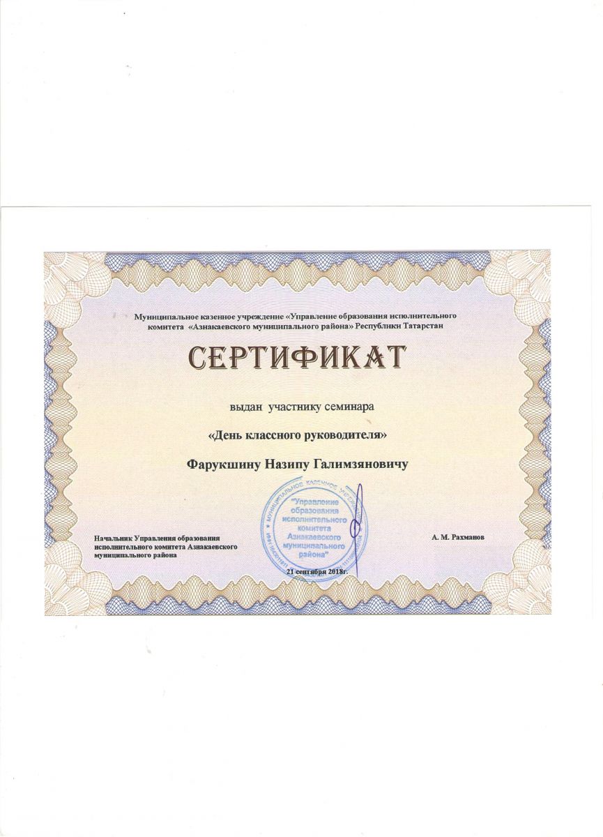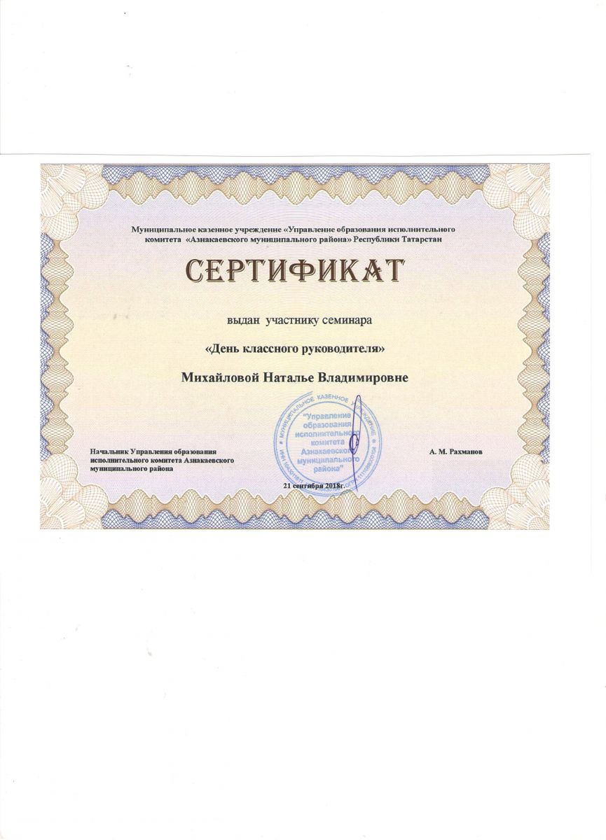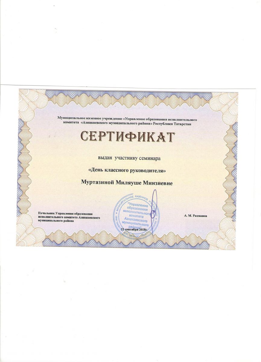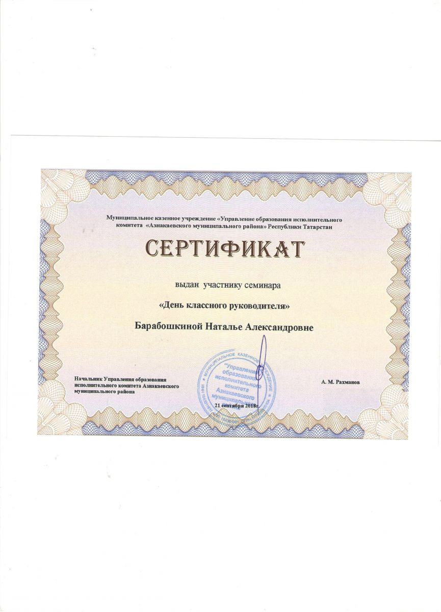 Сертификат на обучение в рамках семинара, 21.09.2018г., Абдурахманова Г.М.