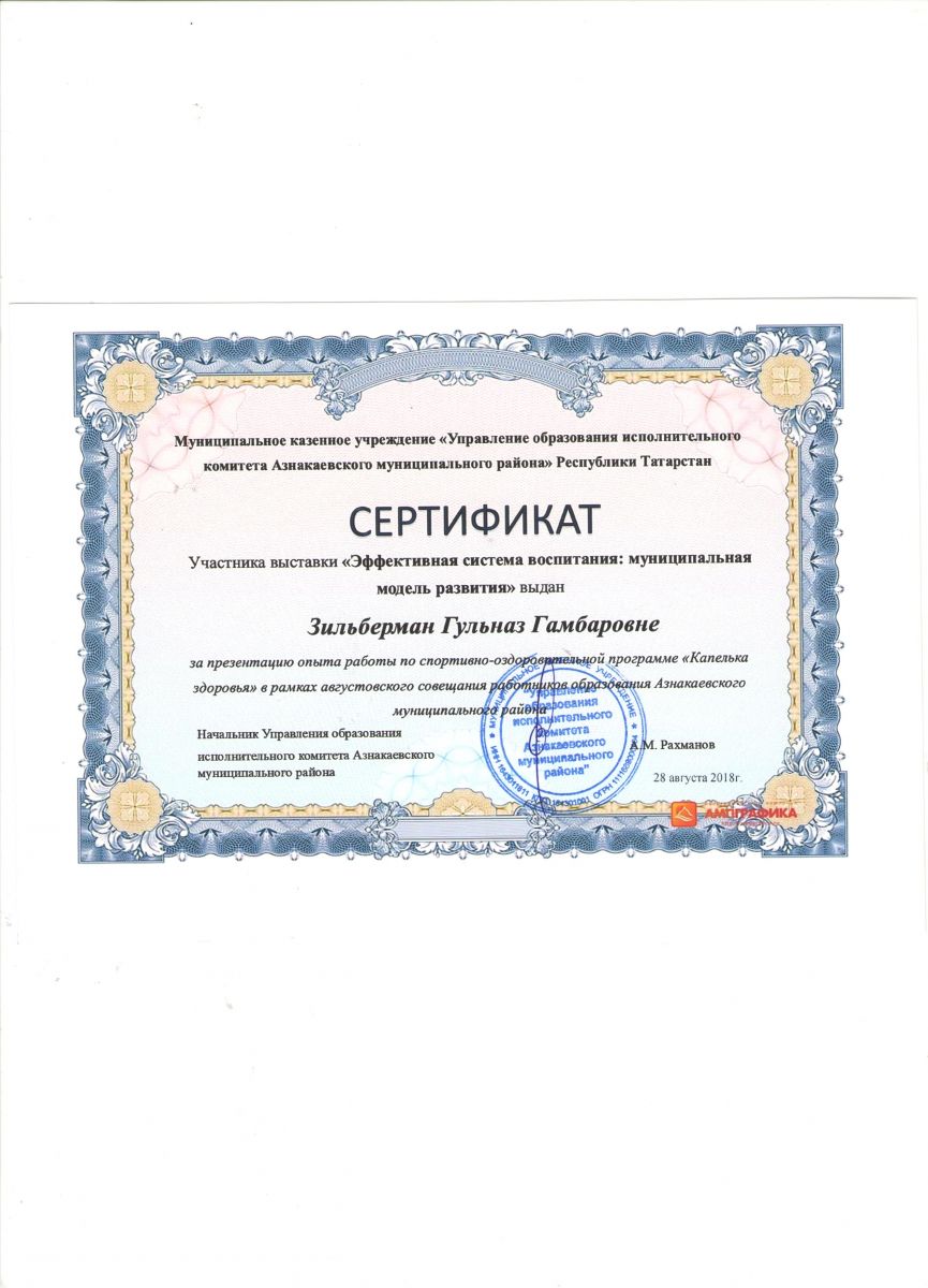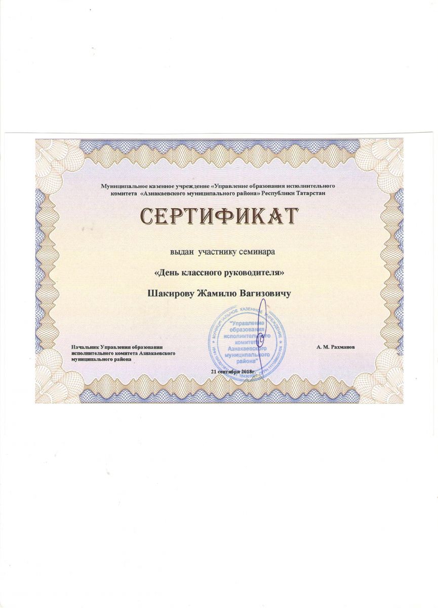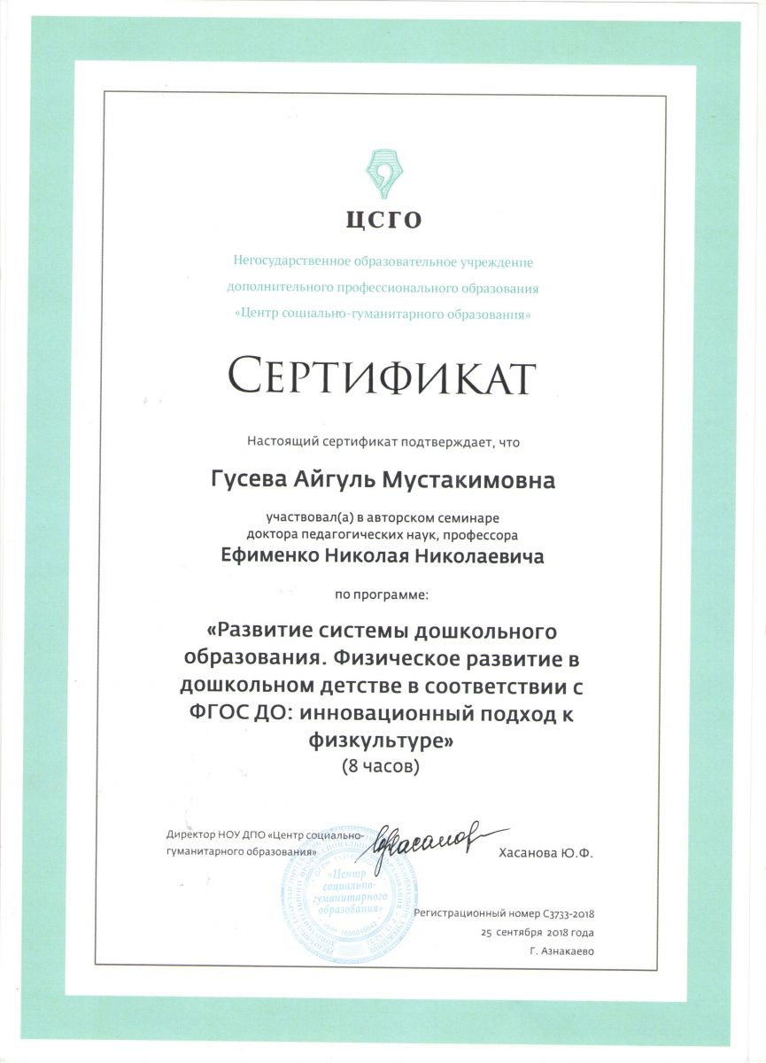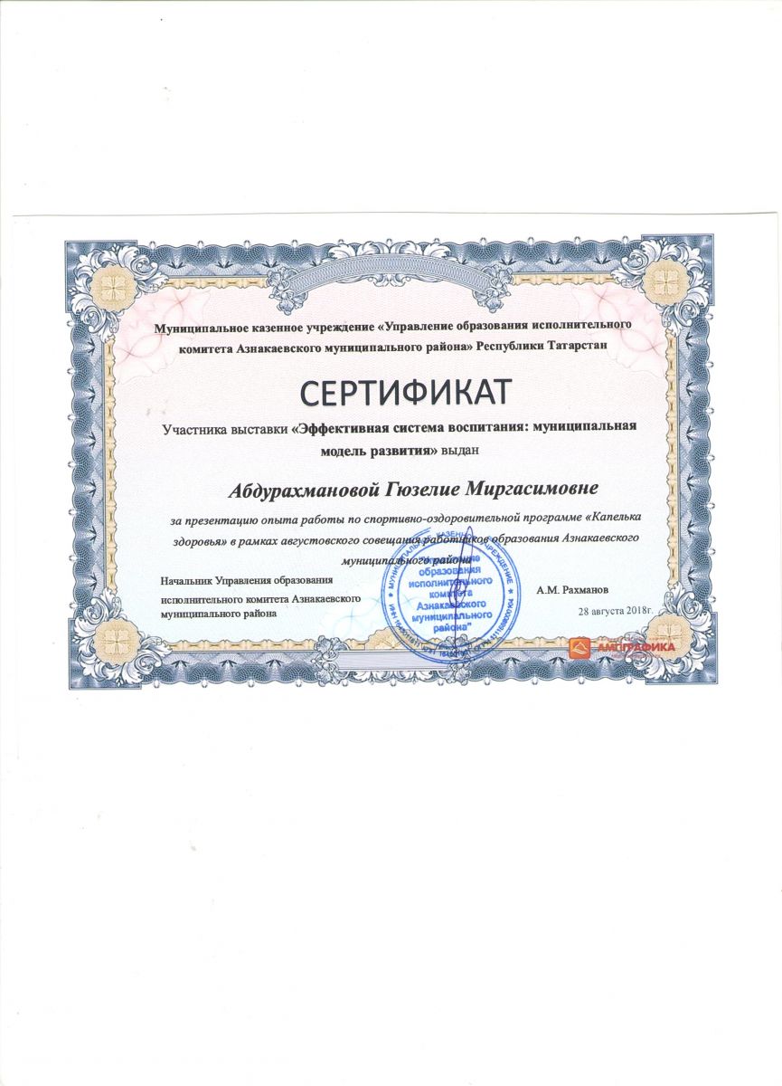 Сертификат на обучение в рамках семинара, 21.09.2018г., Абдурахманова Г.М.