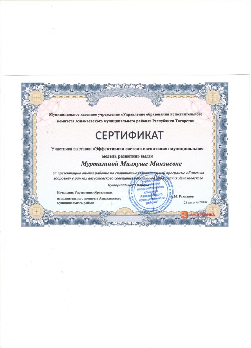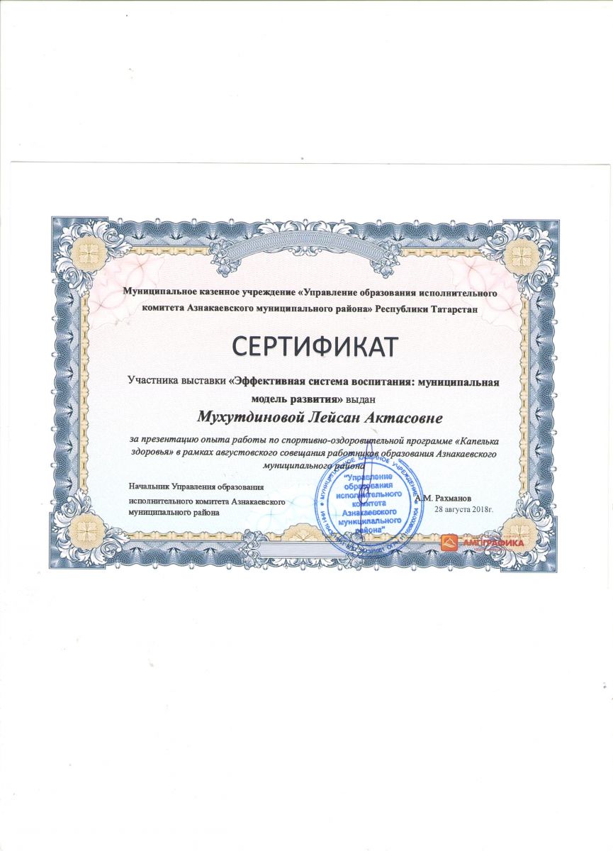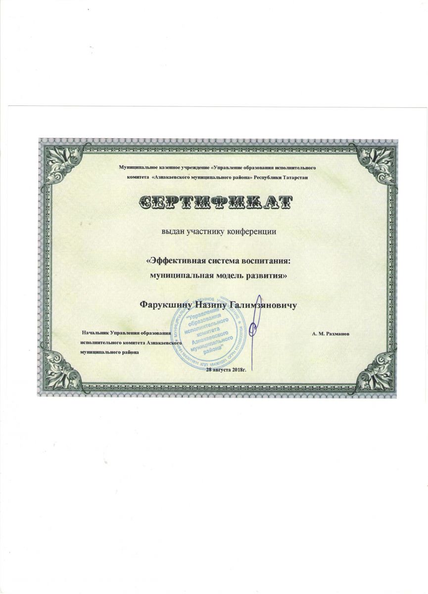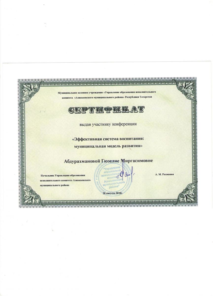 Сертификат участнику конференции "Эффективная система воспитания", 2018г., Мухутдинова Л.А.