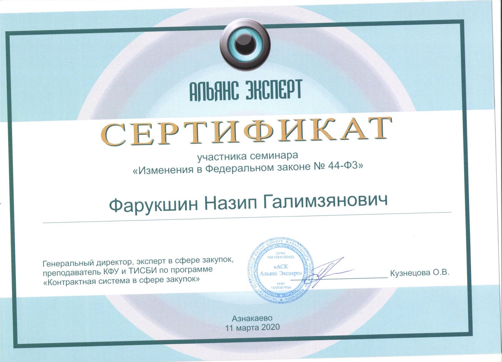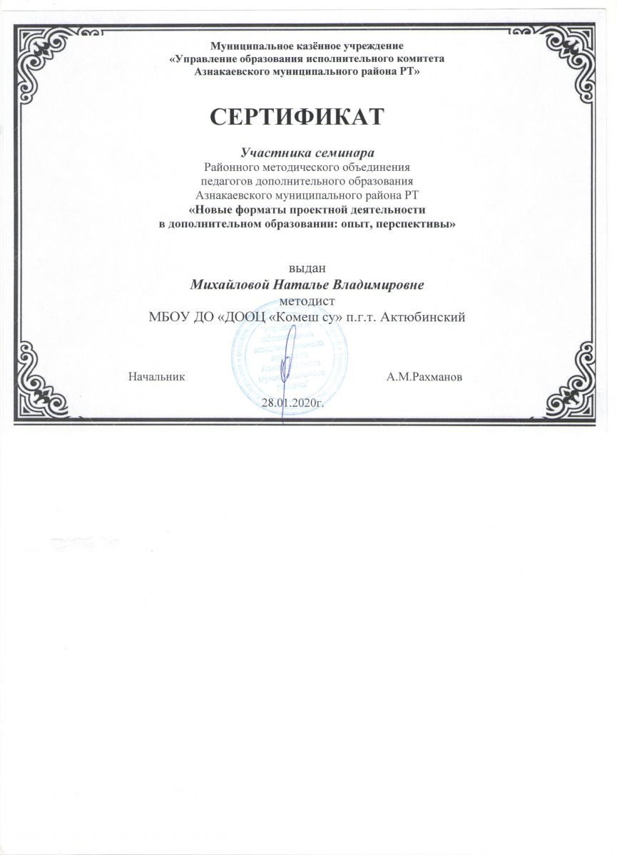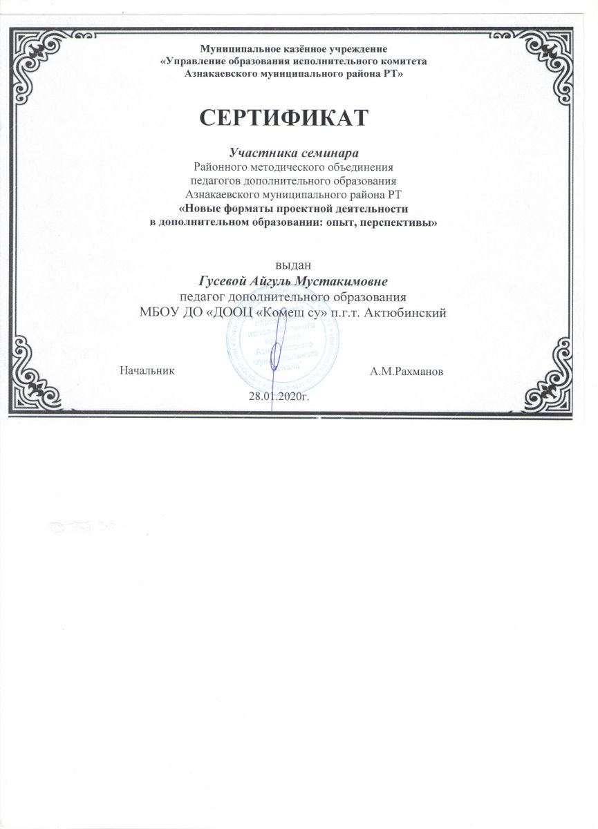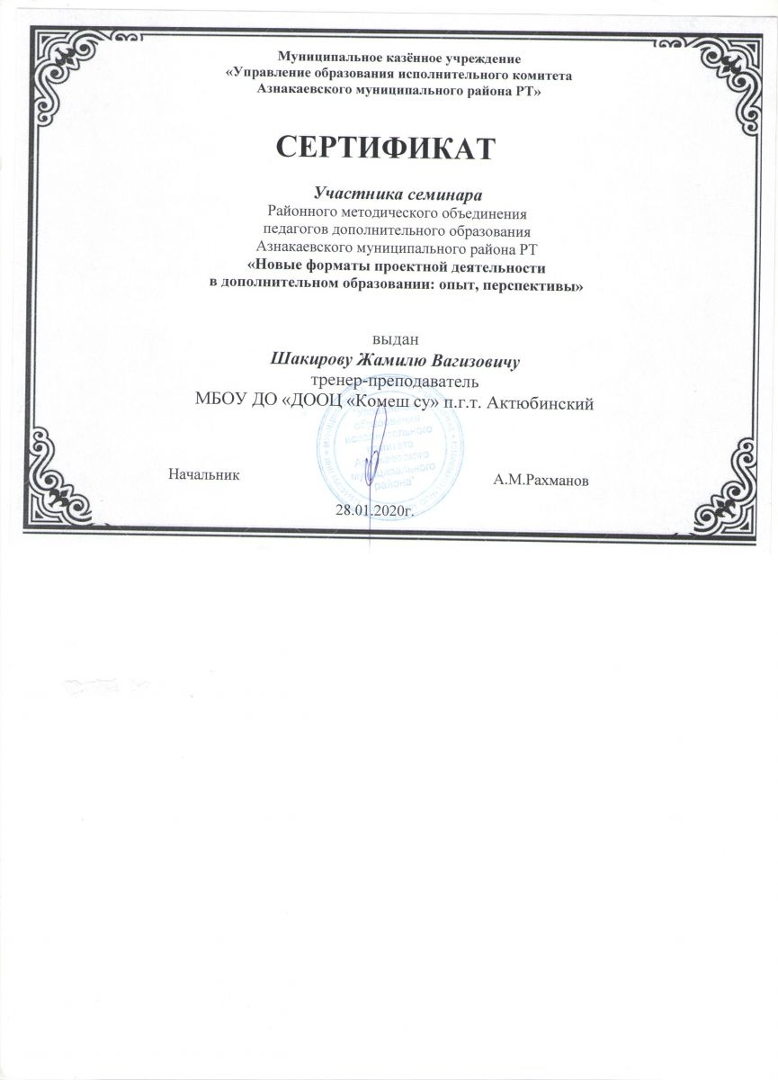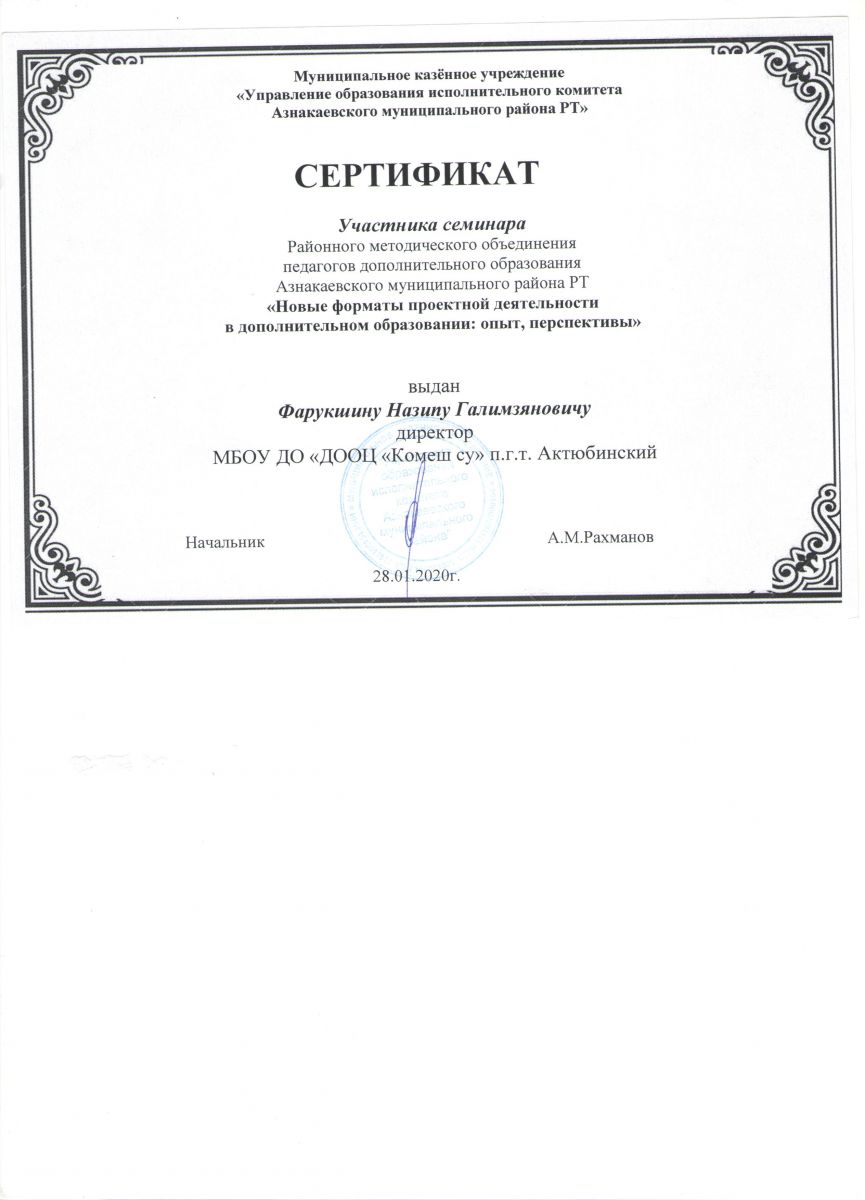 Сертификат участника семинара районного методического объединения ПДО, Фарукшин Н.Г.