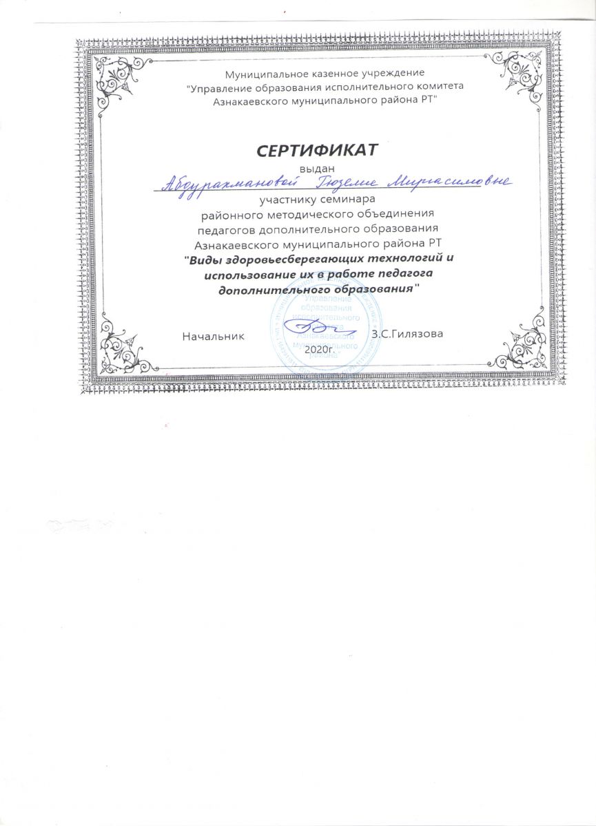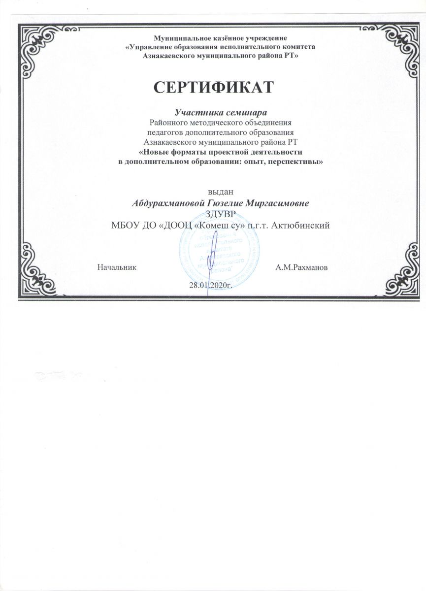 Сертификат участника семинара районного методического объединения ПДО, Абдурахманова Г.М.