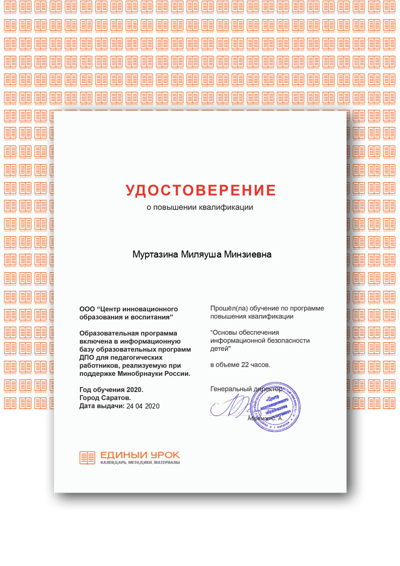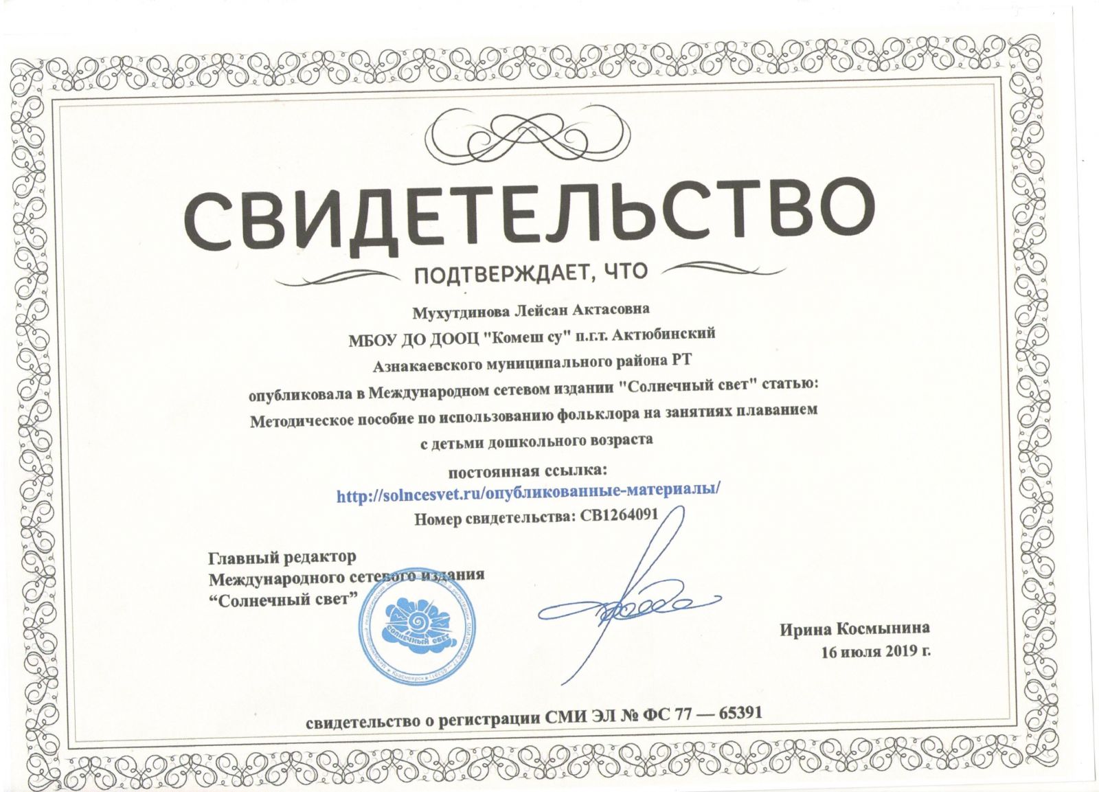 Свидетельство о публикации, Мухутдинова Л.А., 2019г.