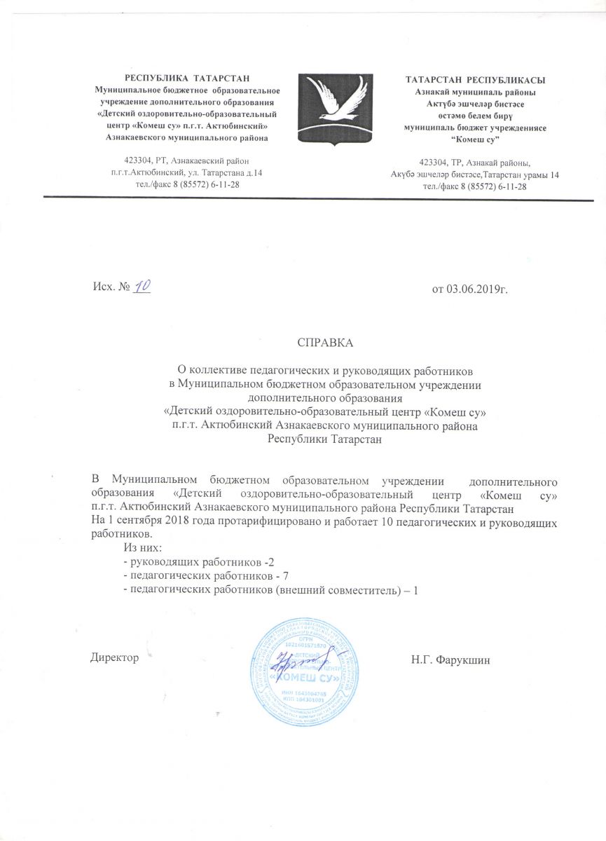 Муниципальное бюджетное образовательное учреждение дополнительного образования «Детский оздоровительно-образовательный центр «Комеш су» п.г.т.Актюбинский Азнакаевского муниципального района РТ»