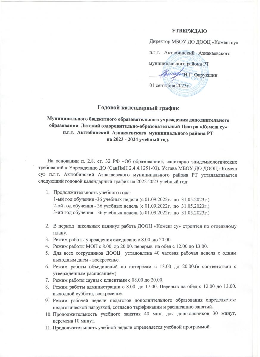 Годовой календарный график на 2023-2024 учебный год