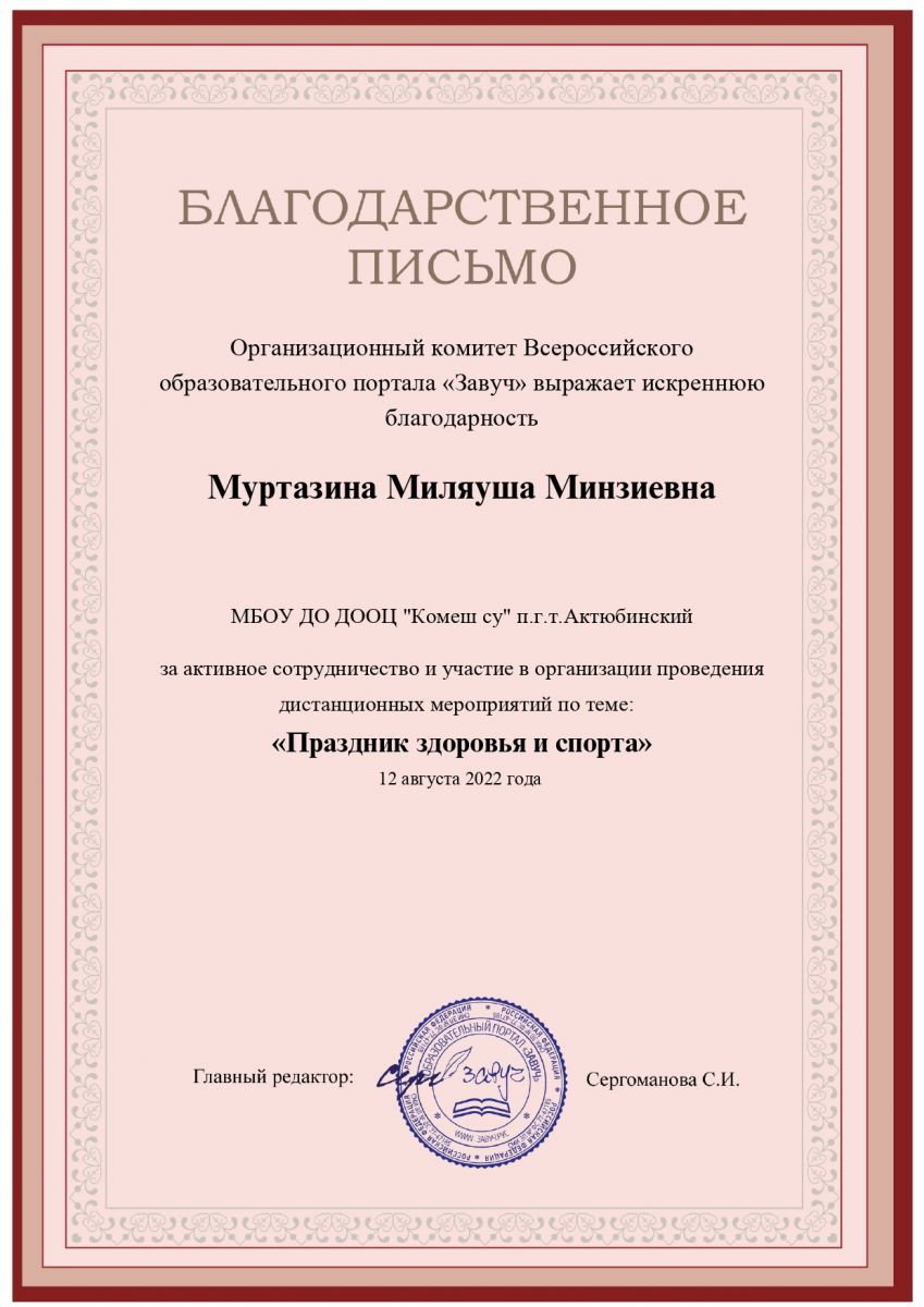 | Короткое название: | МБОУ ДО ДООЦ "Комеш су" п.г.т. Актюбинский Азнакаевского муниципального района РТ |