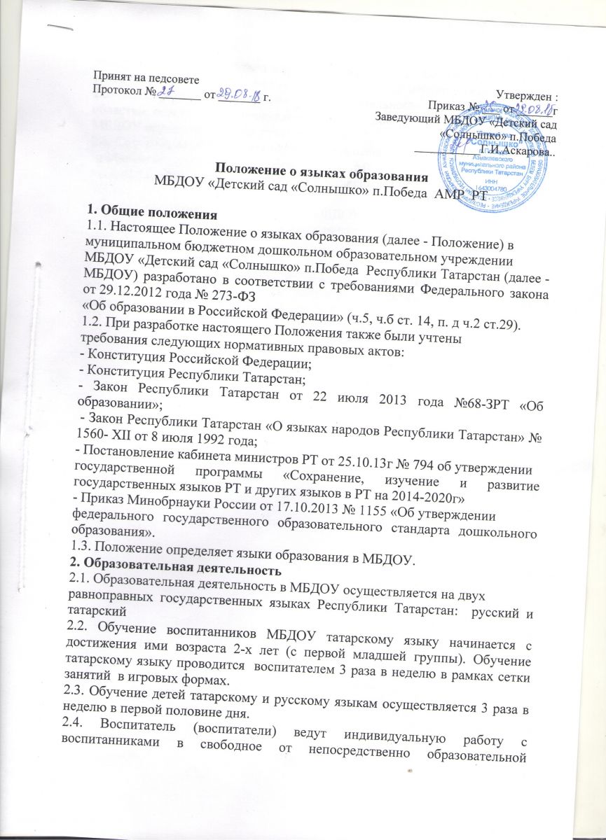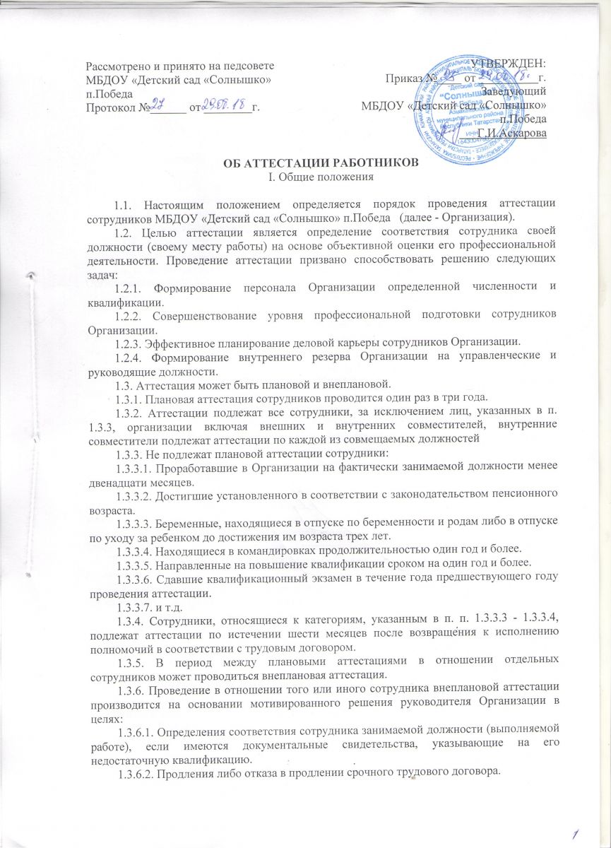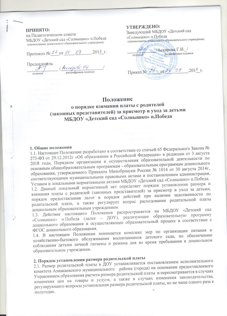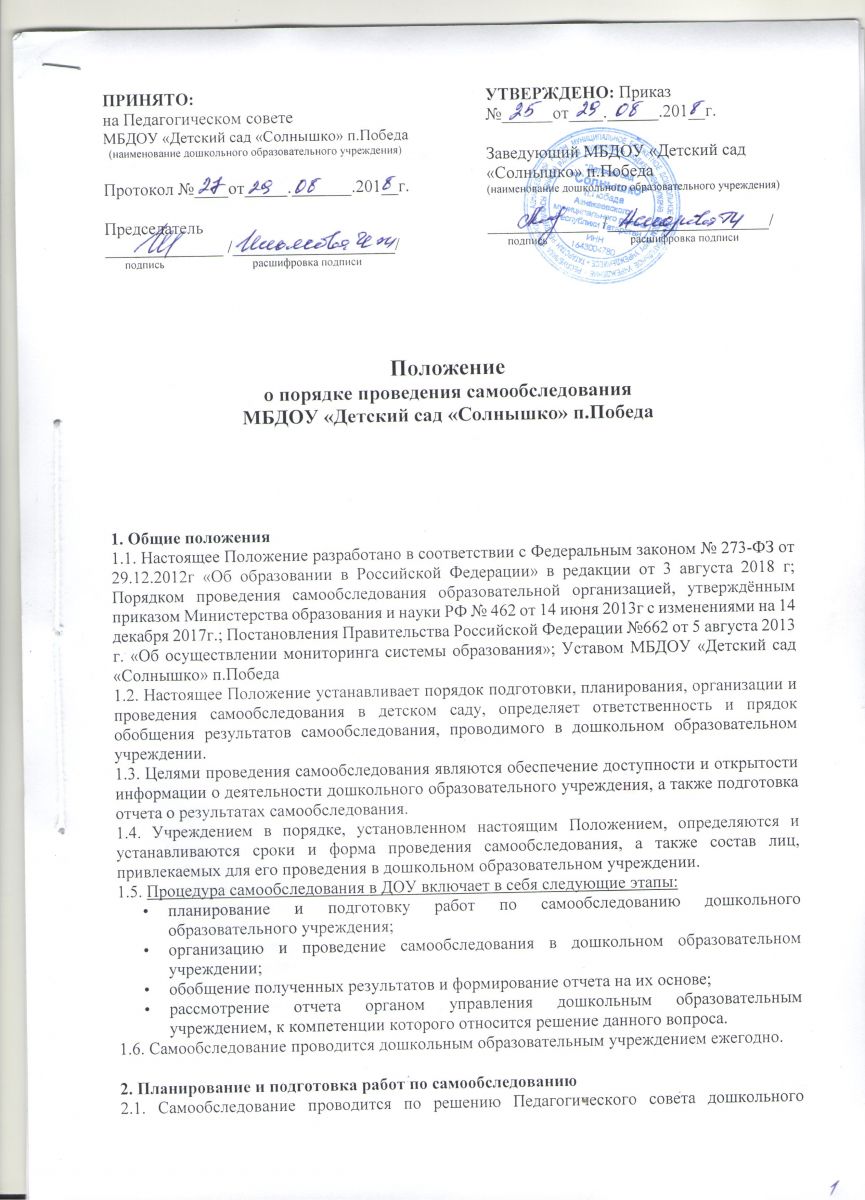 Положение о МБДОУ "Детский сад "Солнышко" п.Победа
