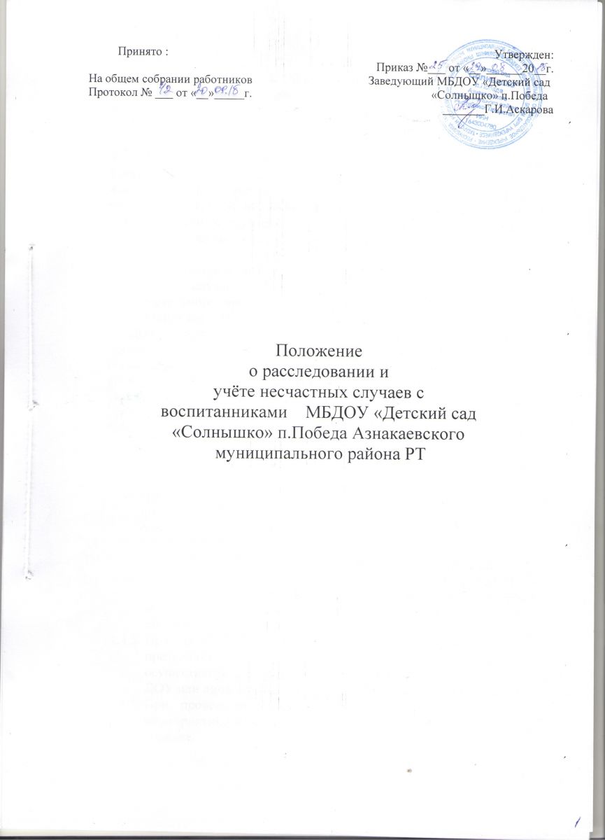 Положение о расследовании и учета несчастных случаев с воспитанниками.