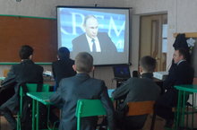 Сегодня в рамках политического воспитания на уроках истории и обществознания учащиеся 7-10 классов участвовали в просмотре пресс конференции призедента России В.В.Путина