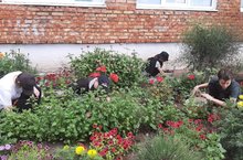 Летом не прекращается работа на пришкольном участке. Дети учатся чувствовать, понимать, ценить и, что самое главное, творить красоту. Если театр начинается с вешалки, то школа — с пришкольного участка. И в каждой школе нашего района стремятся обустроить их с наибольшей пользой, чтобы дети и взрослые видели красоту и восхищались ею.
