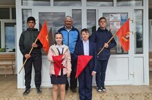 Сегодня прошла торжественная линейка, посвящённая 100-летию Всесоюзной пионерской организации имени В. И.Ленина, с участием ветерана труда, почетного работника образования Султанова Ф. И.