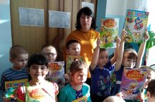 Библиотекарь школы Чернова А.Ф. с воспитанниками старшей группы детского сада п.Победа провела мероприятие в школьной библиотеке "Друг наш-книжка!"